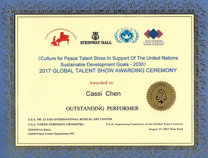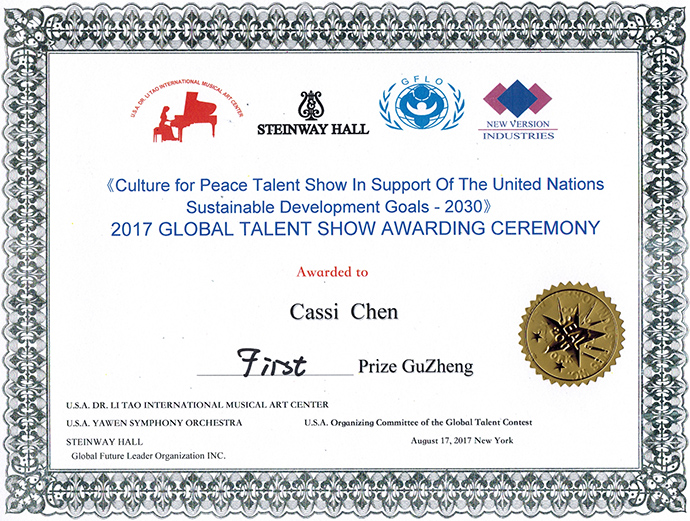 First Place Winner in the youth group of the 2017 Global Talent Show