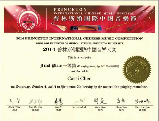 Gold Winner in the youth group of the 2014 Princeton International Music Competition