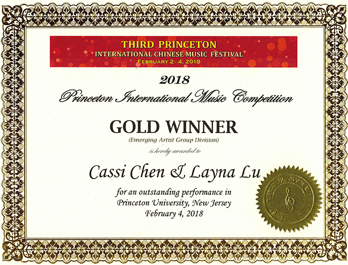 Gold Winner in the youth group of the 2018 Princeton International Music Competition