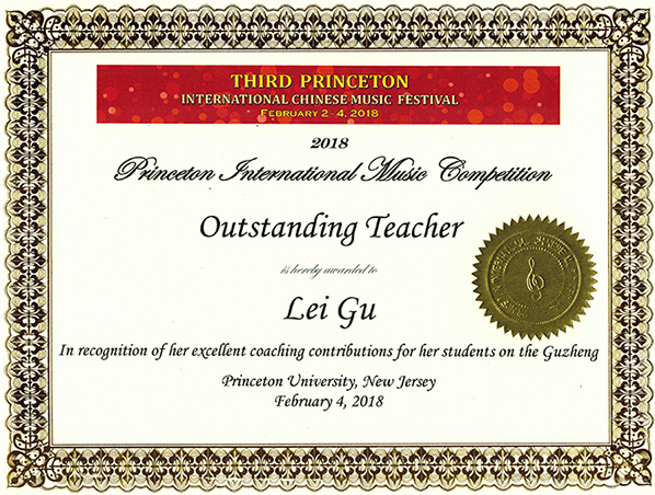 In addition to her duties as a guzheng and zhongruan instructor, Lei Gu is also promoting the Chinese musical culture. She is introducing guzheng, an elegant and beautiful "Oriental Piano", to the western community. She is deeply committed to providing high standard and excellent quality musical education.